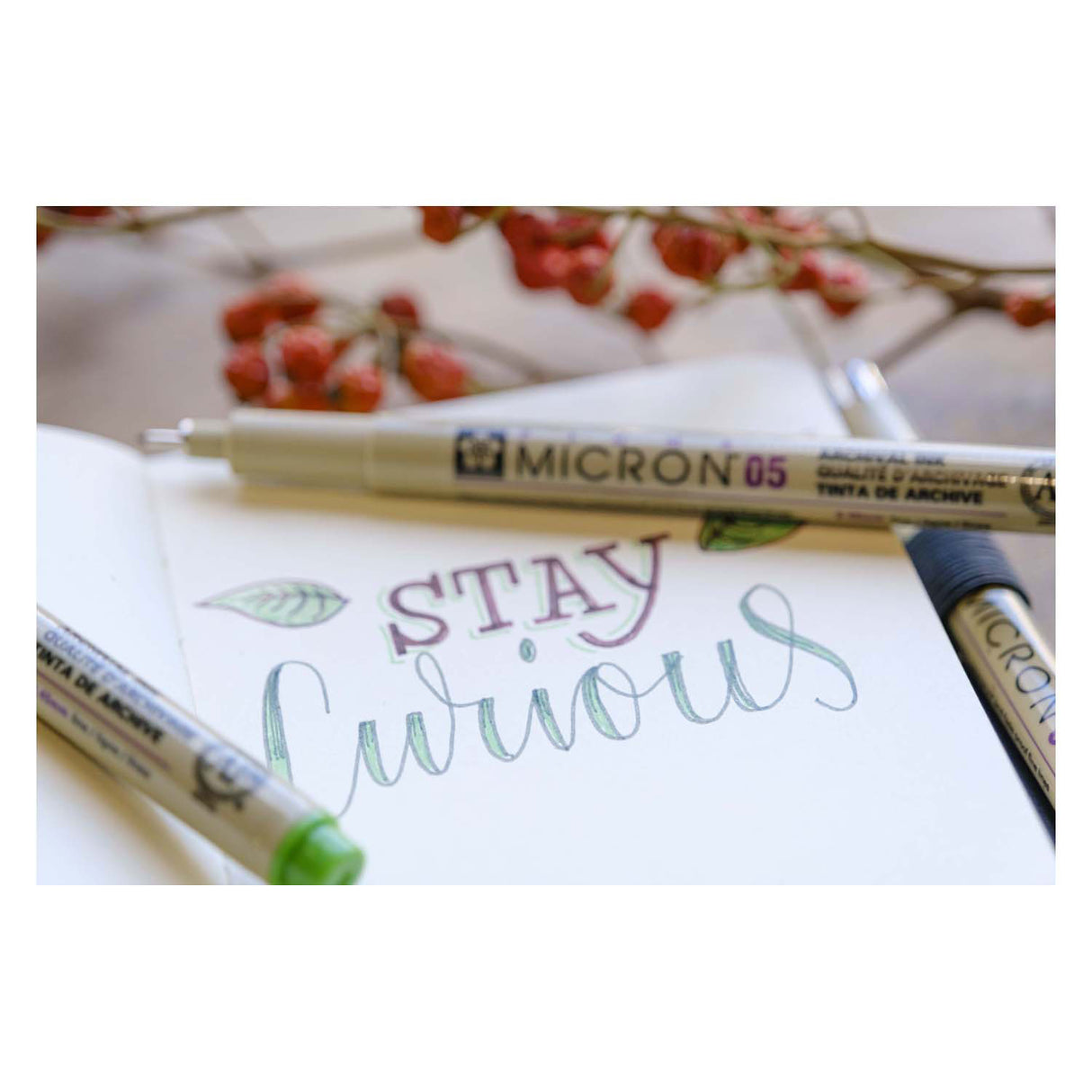 De unieke Sakura Pigma™-inkt loopt niet door papier en is permanent, watervast, sneldrogend, pH-neutraal en loopt niet uit.