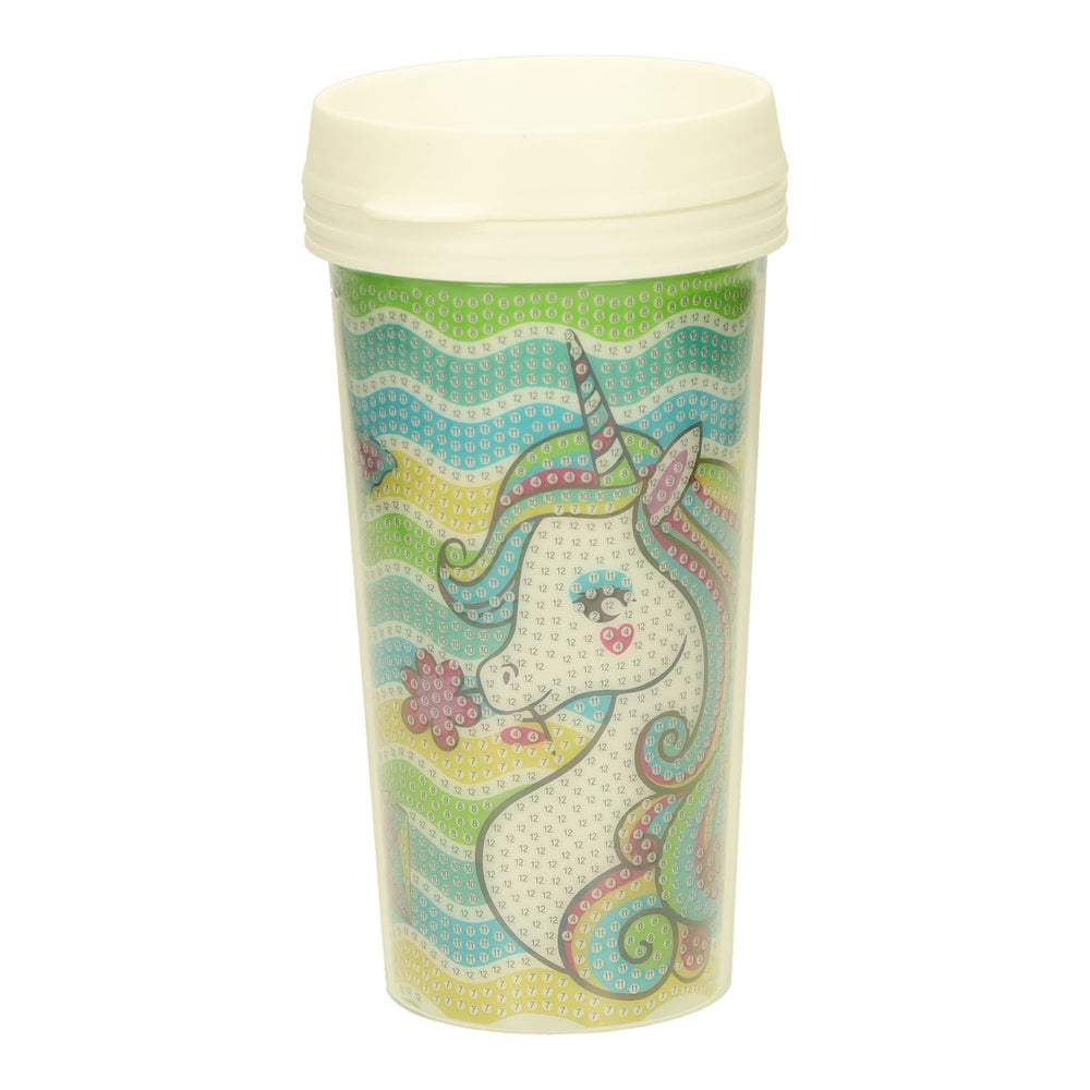 . Knutselset om een drinkbeker te versieren met diamond painting steentjes. Wordt assorti geleverd. Geschikt vanaf 5 jaar.