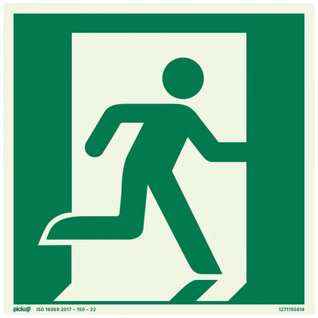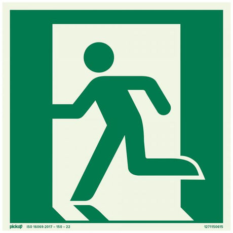 Bord nooduitgang rechts ftlm - 150x150 mm zelfklevend.