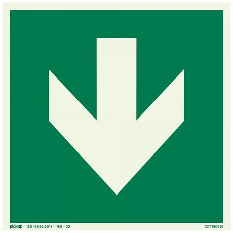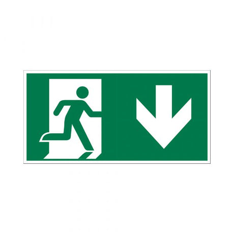 Bord nooduitgang naar beneden - 150x300 mm.