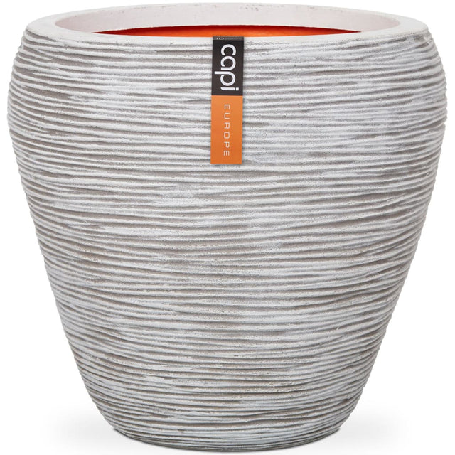 De Capi Nature Rib bloempot is gebaseerd op natuurlijke vormen en heeft een geribbeld patroon dat de potten een speels karakter geeft. Deze bak geeft elke binnen- of buitenruimte een natuurlijke uitstraling en is perfect te combineren met andere beschikbare vormen en maten binnen de Capi Nature Rib collectie!