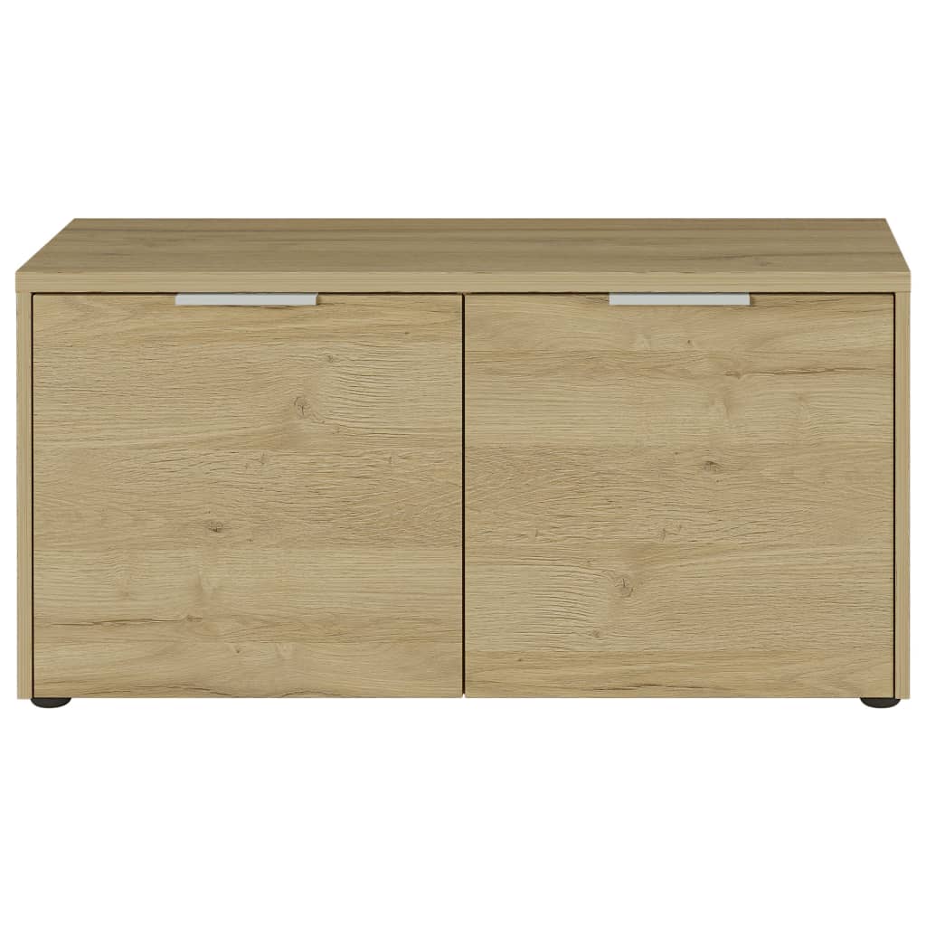 Hij is gemaakt van gelamineerd spaanplaat in een prachtige Grandson eikenkleur. De schoenenkast heeft twee verstelbare schappen (elk met een draagvermogen tot 10 kg) die opbergruimte bieden aan verschillende dagelijkse benodigdheden en maximaal 8 paar schoenen. Met een hoogte van 48 cm biedt de schoenenkast ook de ideale hoogte voor een comfortabele zithouding en is hij voor een korte tijd bestand tegen een gewicht van maximaal 90 kg.