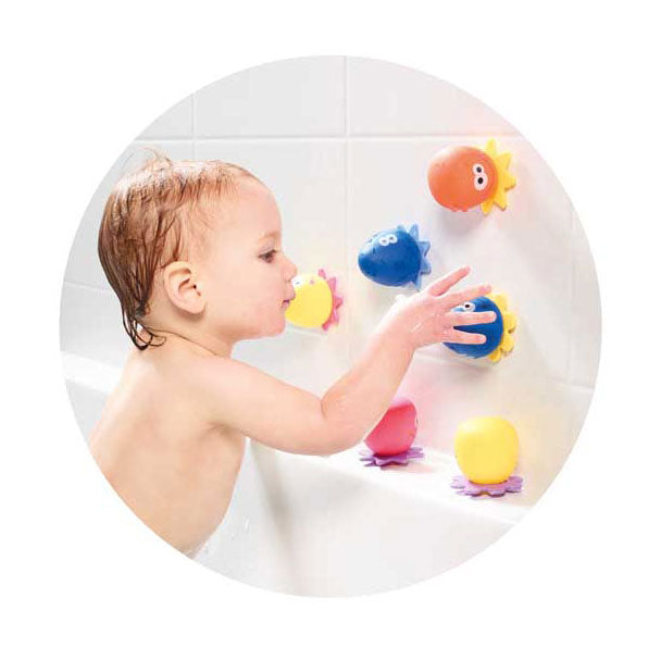 Beleef heel veel waterplezier met deze Familie Octopus! Druk de octobaby's in en er komt water uit. Sorteer de juiste octobaby en zet hem op de juiste plek. De octobaby's plakken aan de rand van het bad of op de tegels. Zo raak jij je vriendjes nooit kwijt! Geschikt voor kinderen vanaf 12 maanden.
