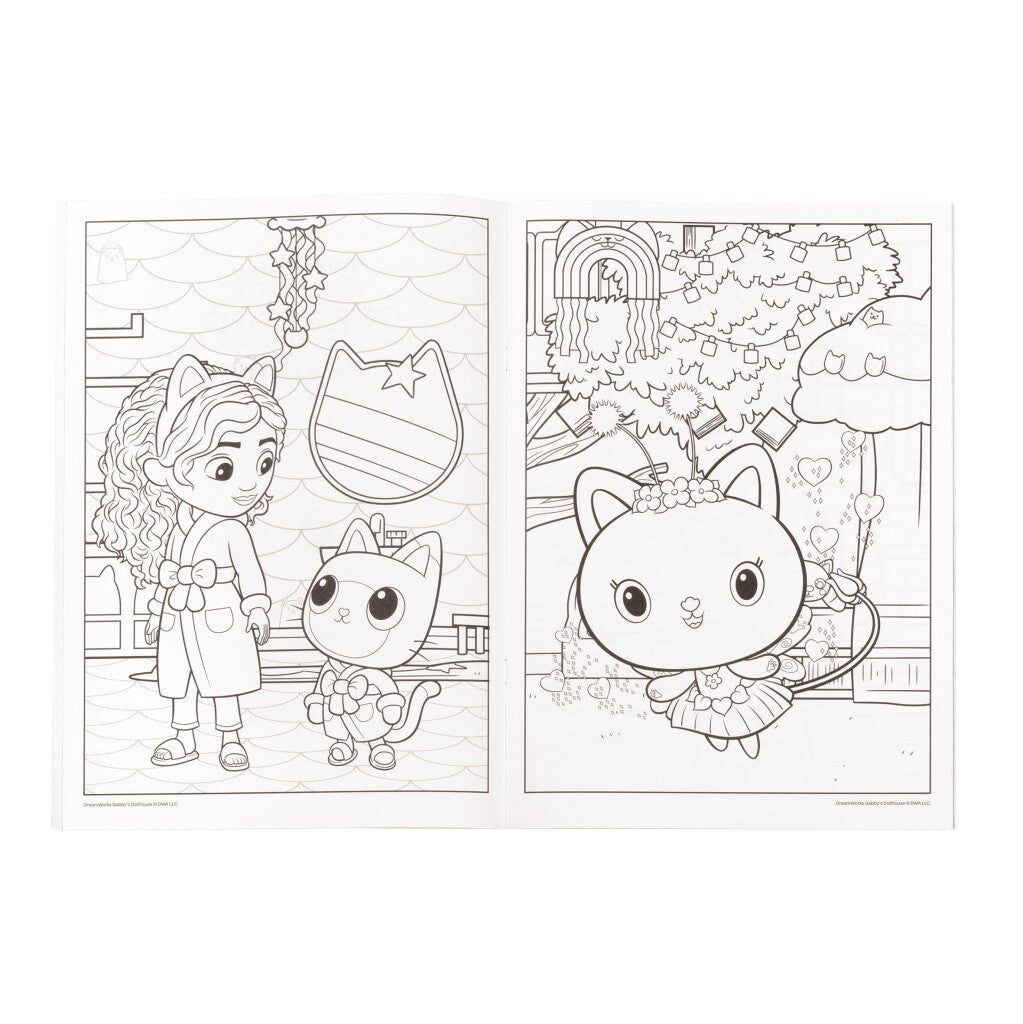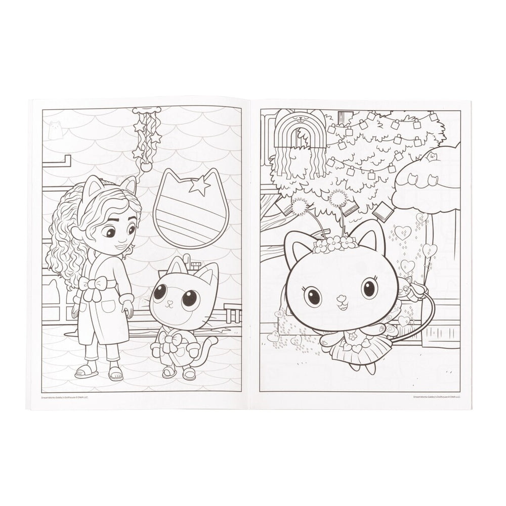 In dit leuke boekje van Gabbys Dollhouse combineer je twee leuke activiteiten, namelijk stickeren en kleuren. Maak de mooiste creaties met de zes dubbele paginas aan kleurplaten en laat daarna je fantasie de vrije loop met de ruim 90 stickers bijbehorende stickers. Plak de stickers op je kunstwerken, schoolschriften, uitnodigingen en nog veel meer. Dit alles in het thema van Gabby, Pandy Paws en alle andere kattenvriendjes! Naast de kleurplaten en stickers vind je op de achterkant van het boekje ook een leuk standaardje van DJ Catnip en Pillow Cat die je kunt uitknippen en neerzetten op je kamer, zo leuk! Stickerboek met meer dan 90 herbruikbare stickers van Gabby's Poppenhuis.
