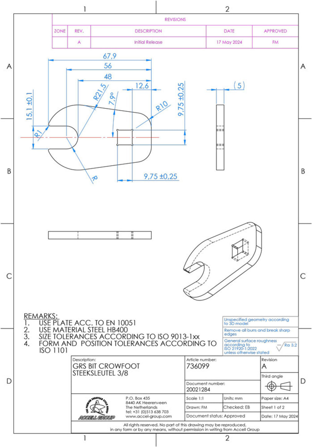 Unbranded grs bit crowfoot steeksleutel 3 8 15mm