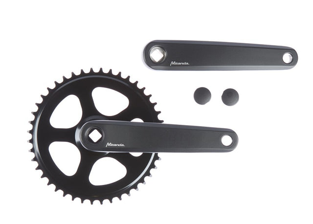 Miranda Delta Jis aluminiums bunnbeslag er en matt-svart sveiv med en bryterstørrelse på 3/32. Giret har 44 tenner og kjedetoppen er også svart i fargen. Veiven har en lengde på 170 mm og høydenheten er 45 mm. Denne bunnbraketten er lekløs og har en bunnbeslag av JIS -typen.