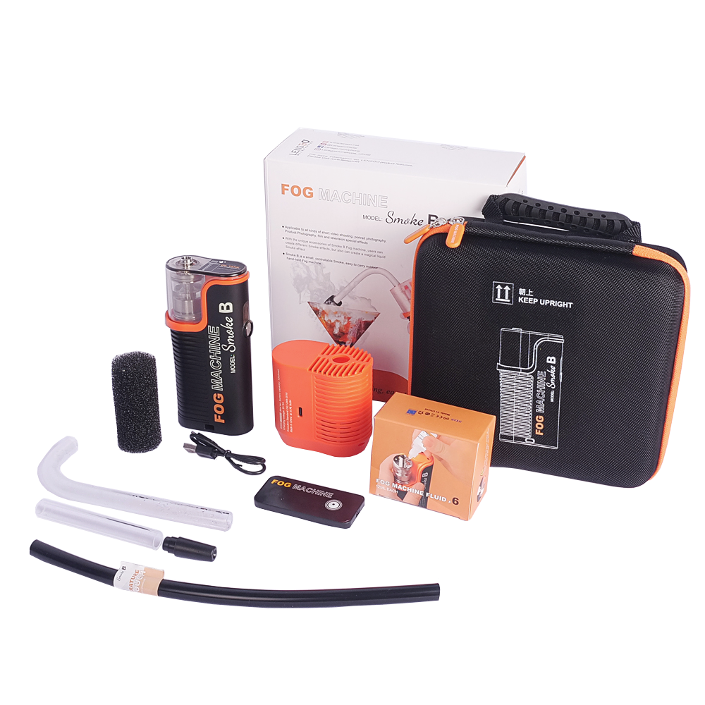 På du vil motta et komplett sett med tilbehør: 1 x Smoke B håndholdt tåkegenerator, 1 x atomiseringsrøykkammer, 1 x håndholdt fjernkontroll, 1 x USB-C ladekabel, 6 x 12ML spesialrøykvæske, 1 x rett rør, 1 x buet rør, 1 x trykkøkende dyse, 1 x spongbeskyttende vifte, 1 x uklarhetsvifte,