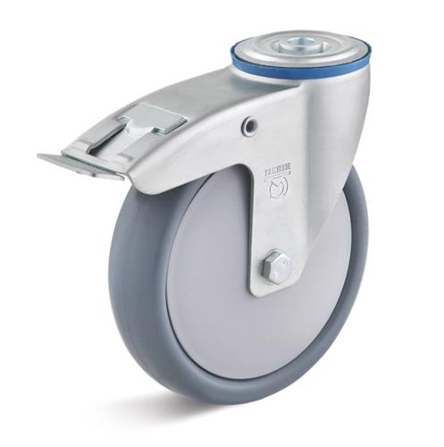 Torwegge zwenkwiel m rem termoplastisch ø100 kunststof boutbevestiging