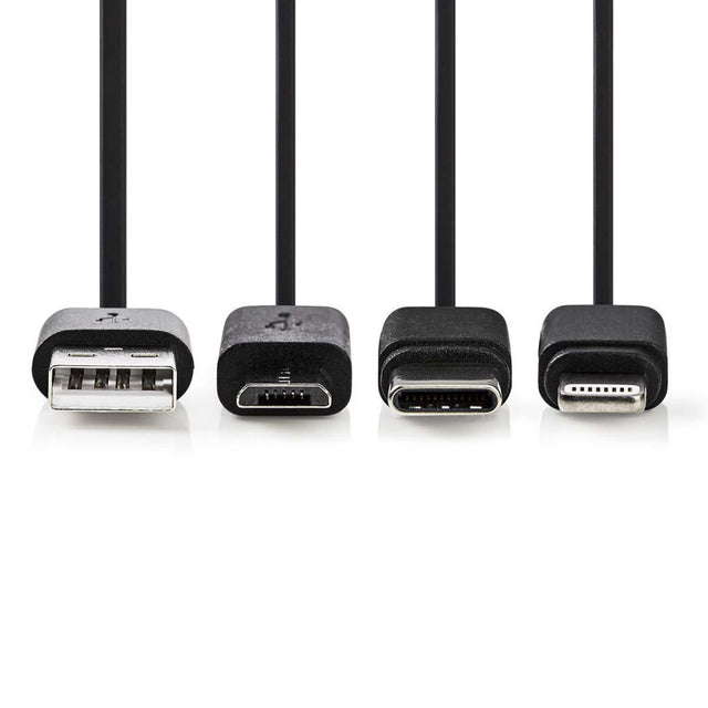 NEDIS CCGP60620BK10 3-in-1 Synchronizacja i ładowanie kabla USB-A Męsko-Micro B samiec typu-C Mężczyzna Apple Lightning 8-pins Mężczyzna 1,0 m Black