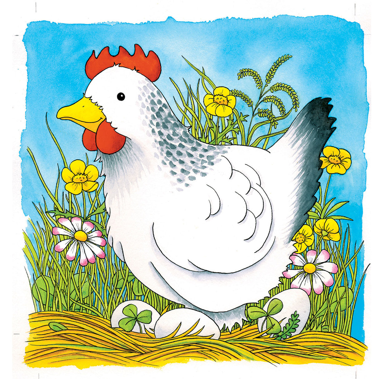 Czterowarstwowa łamigłówka z 44 elementami łamigłówek, które pokazują, jak rośnie kurczak.