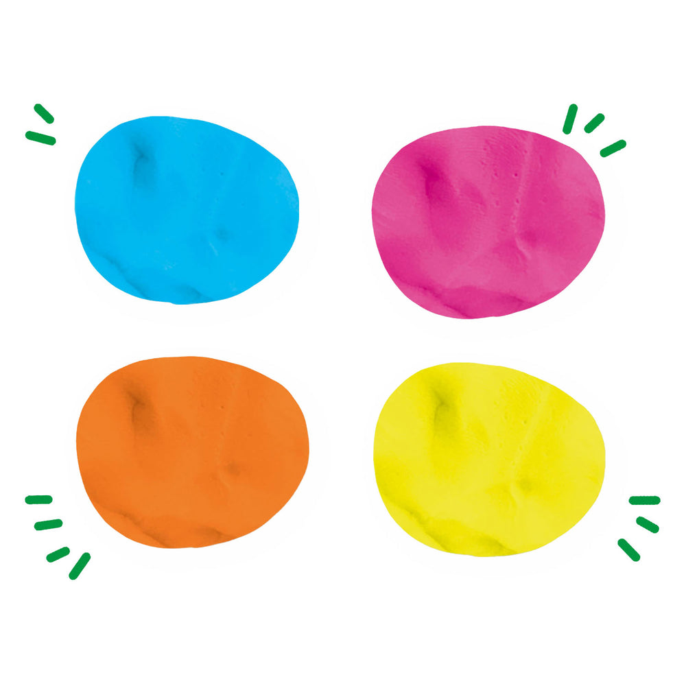 Glina SES jest wesoła i dobrze czuje się glina, która daje ci dobre uczucie! Ta glina jest wykonana z 100% materiałów wegańskich, jest pozbawiona glutenu i łatwo się zmyć. Glina ma jasne i miękkie kolory, które przez długi czas pozostają piękne dzięki opakowaniom zamrażanym. Po zagraniu z gliną możesz zeskanować pakiet kodem QR i odkryć, co jeszcze możesz z tym zrobić! Feel Good Happy Clay składa się z radosnych kolorów jasnogoszy, jasnoniebieskiego, pomarańczowego i żółtego.