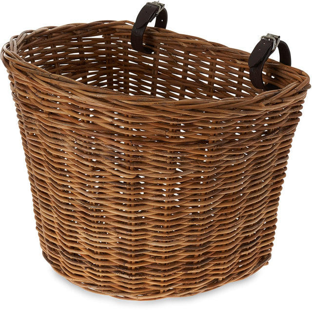 This handy, removable bike basket easily attaches to your handlebars or front carrier using the leather straps. The basket has a beautiful semi-circular shape and is large enough to carry groceries.