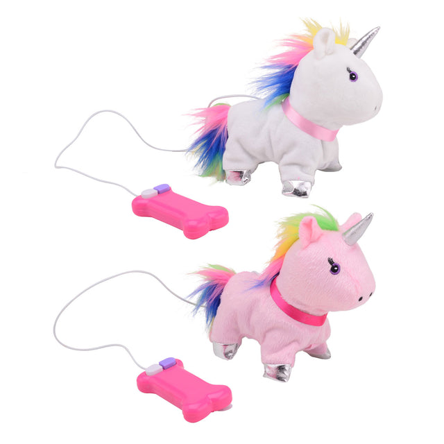 Walking unicorn with a remote control on a string.