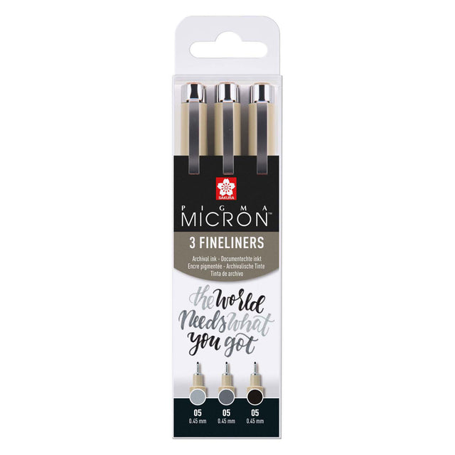 Sakura Pigma Micron 05 fineliner set, 3 pens, black-gray