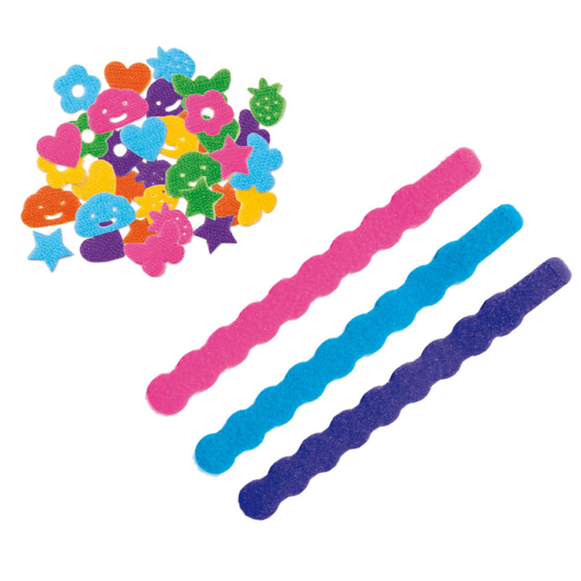 With the SES 14803, you can easily decorate your own bracelets. The Velcro can be decorated with shapes in different colors. Thanks to the convenient Velcro system, the shapes and bracelets can be reused again and again.