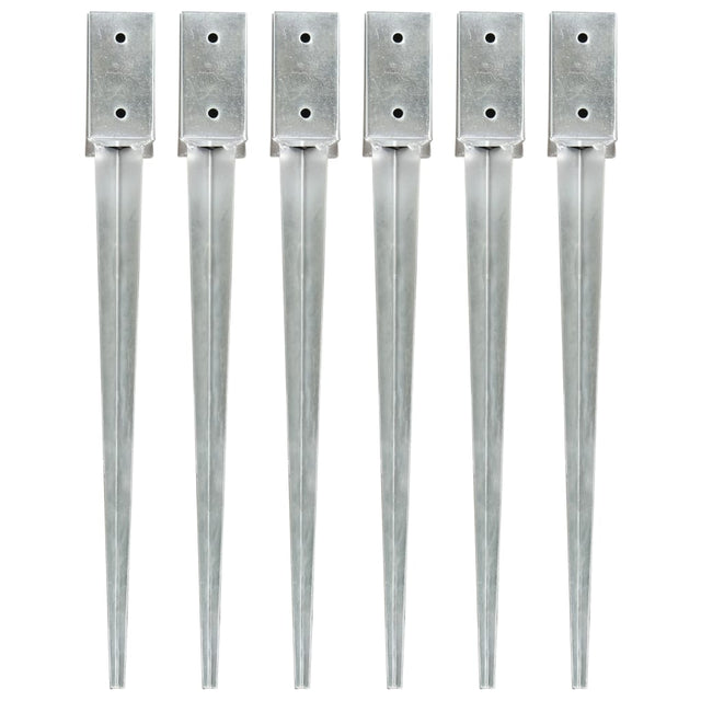 Vidaxl grondpinnen 6 st 7x7x75 cm gegalvaniseerd staal zilverkleurig