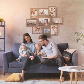The photo frame is suitable for both vertical and horizontal placement. You can mount it on the wall.