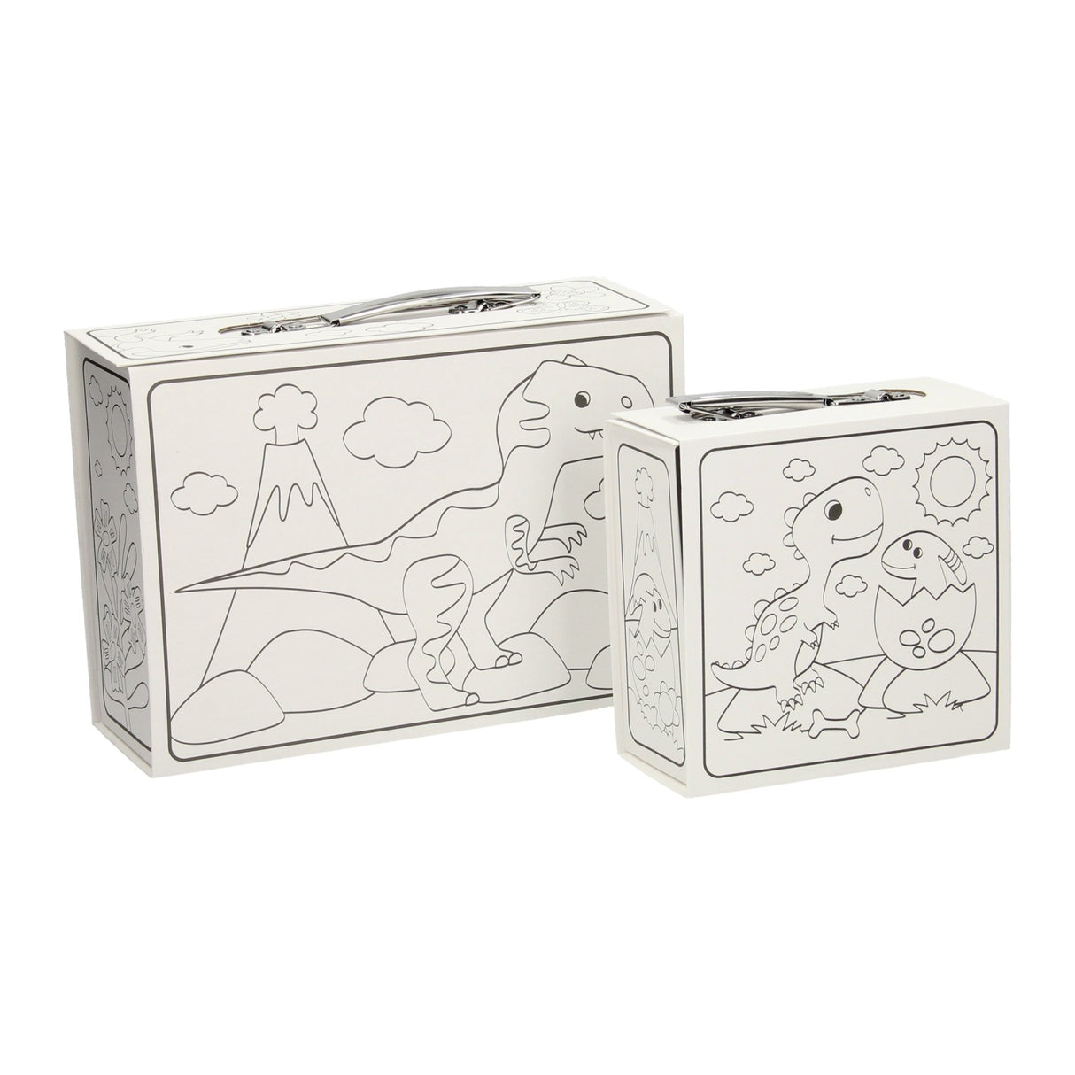 Conjunto de artesanato para colorir e montar 2 dinocoffers (15x15x17 cm e 25x18x9 centímetros).
