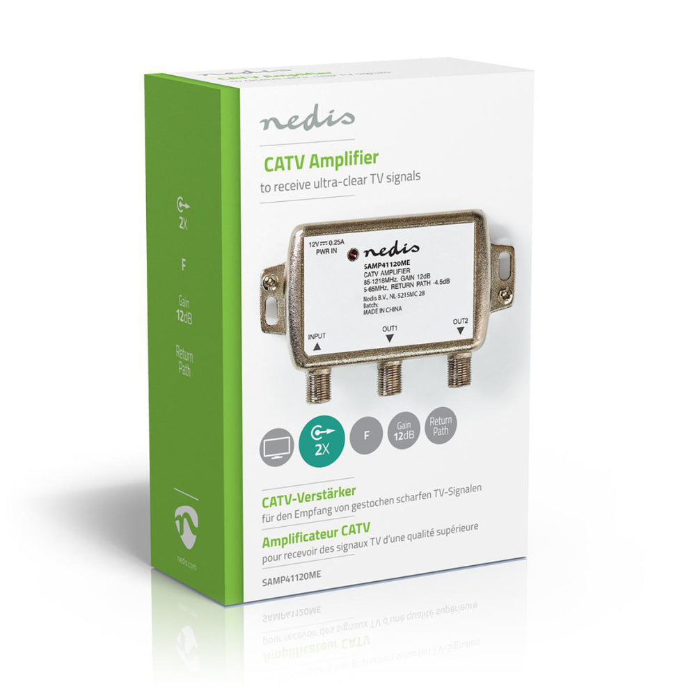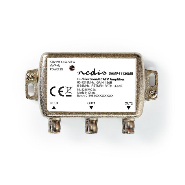 Nedis Samp41120me Catv amplifier max. 9 dB gain 85 - 1218 MHz 2 outputs return channel -4.5 dB 5 - 65 MHz f