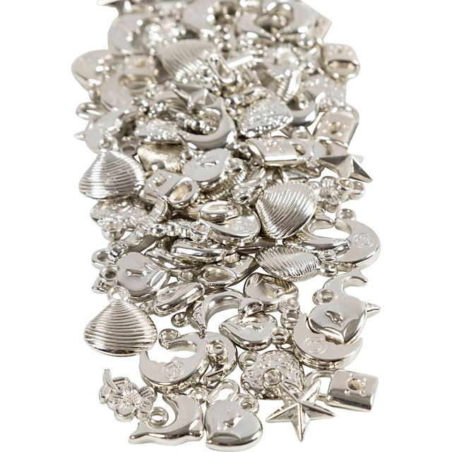 Creativ company silver charms, size 15-20 mm, hole size 3 mm, approx. 200 pieces, 80 g 1 box