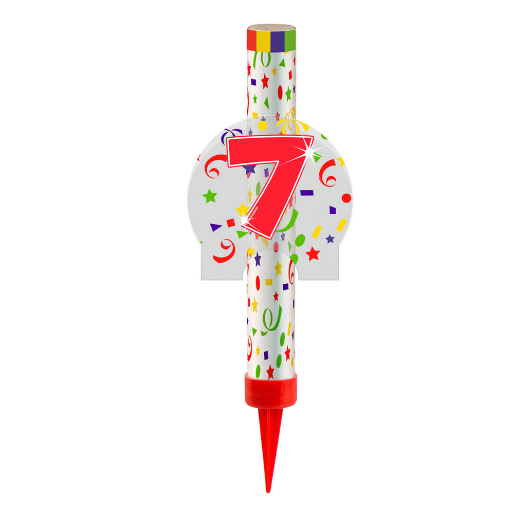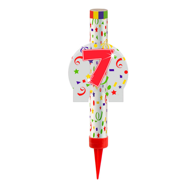 Uma fonte festiva de gelo na forma do número 7. Esta fonte de gelo é perfeita para colocar bolos ou bolos de sorvete para um toque festivo. Com um tempo de incêndio de cerca de 45 segundos, essa fonte de gelo fornece um impressionante fogos de artifício em sua festa. A fonte de gelo é projetada especialmente para uso interno e vem com uma iluminação útil.