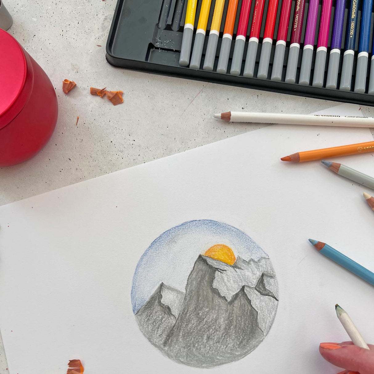 Stabilo Carbotello é um arroz pastel em forma de lápis com intensidade de cor profunda e brilho claro, mesmo em uma superfície escura. É ideal para um trabalho e detalhes muito precisos, graças ao ponto suave. Também pode ser usado em papel fino. A linha é seca e granulada, semelhante ao carvão.