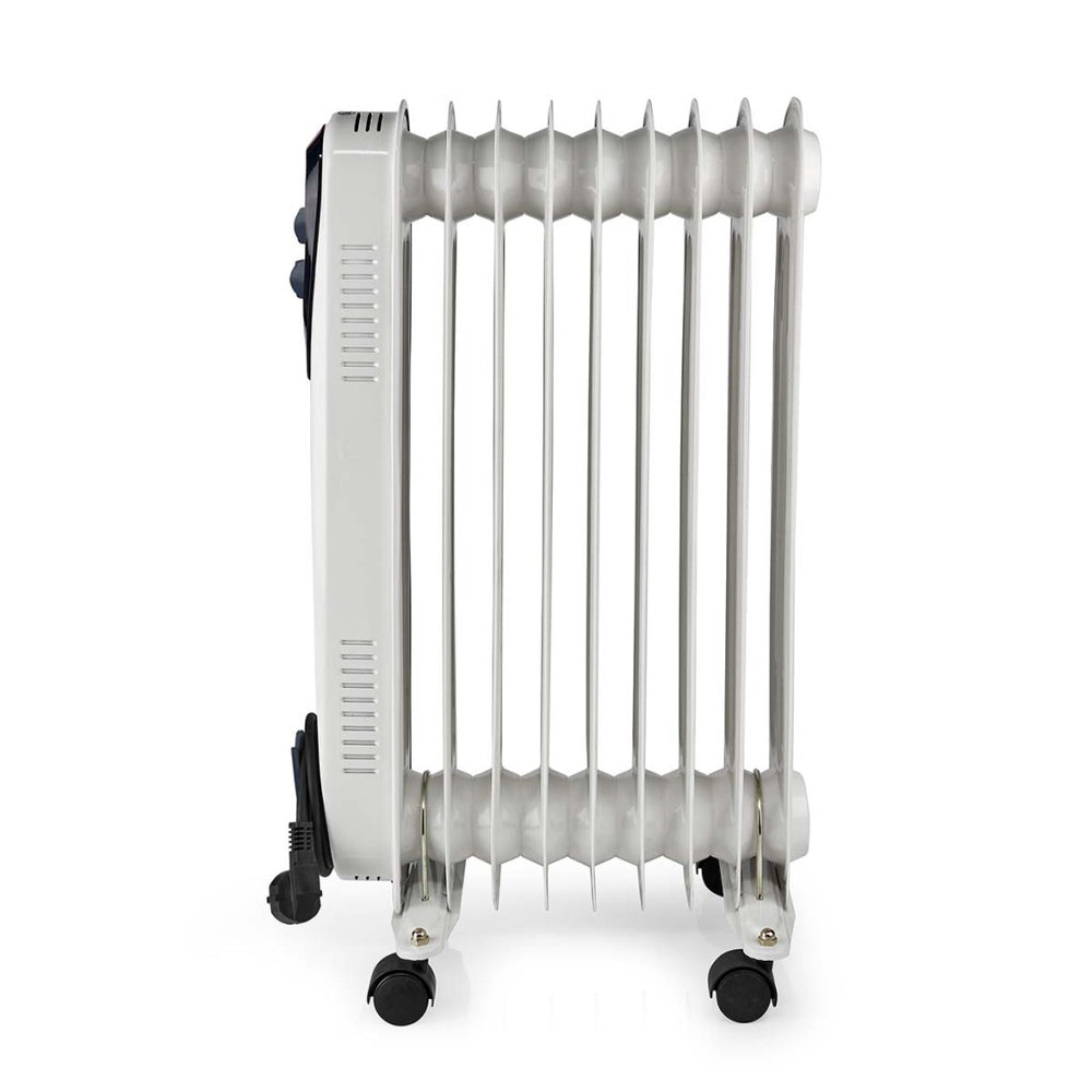 Nedis htoi30wt9 mobile oil radiator 800 1200 2000 w 9 fins adjustable thermostat 3 heat settings tip-over prevention white