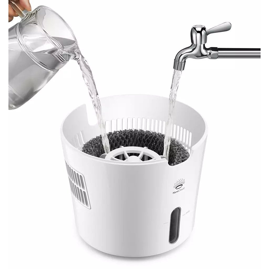 - The unique NanoCloud technology uses natural evaporation to emit pure water vapor. NanoCloud's ultra-fine mist is invisible to the eye and extremely difficult for bacteria or residue to adhere to. Air humidification with up to 99% less bacteria than with standard ultrasonic humidifiers.