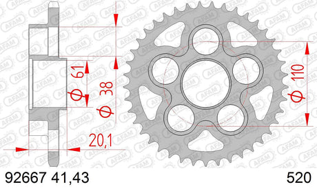 Afam reťazové koleso 520 41z oceľ strieborná f.pcd