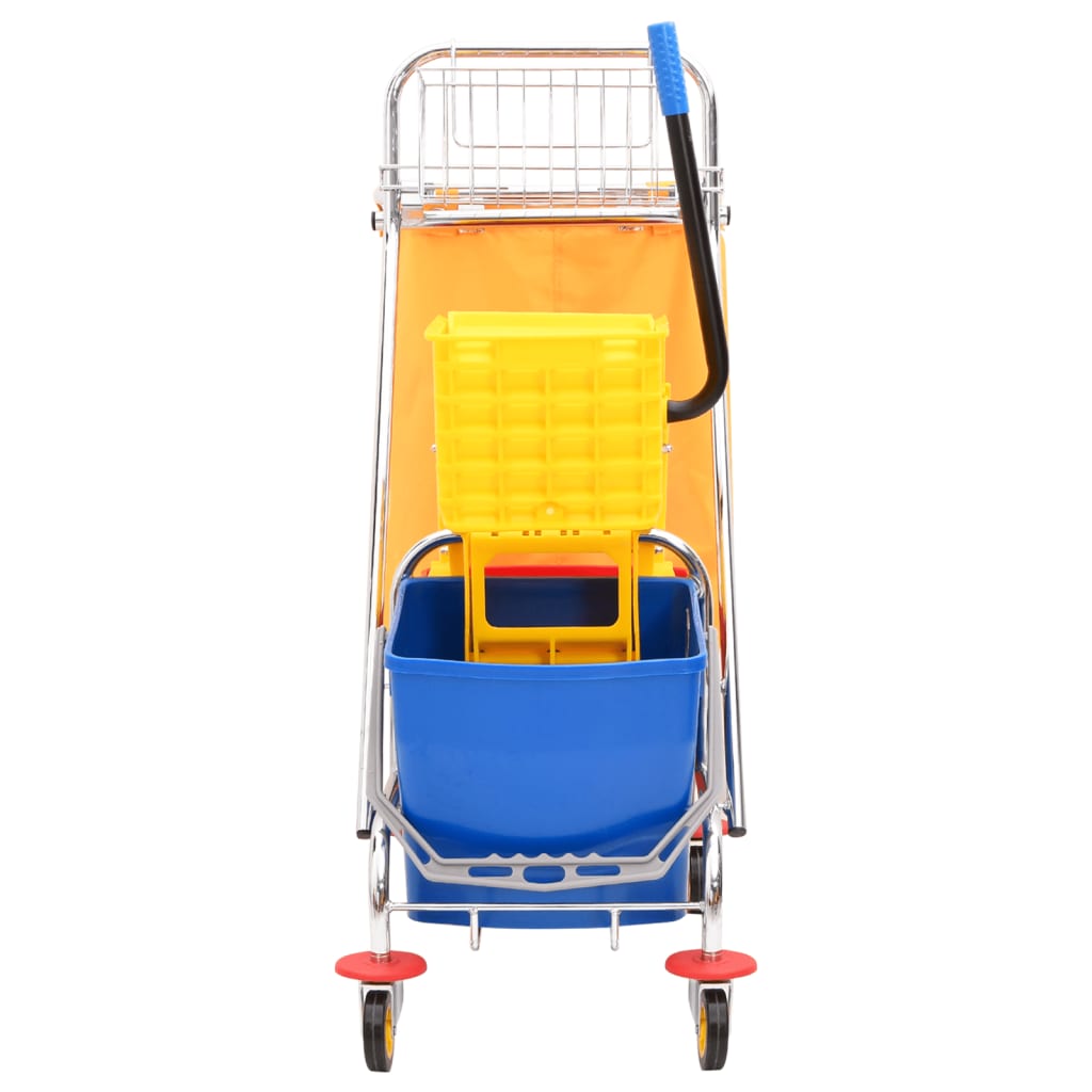 This cleaning cart with buckets and a wringer is a great choice for efficiently cleaning floors or mopping up messes.