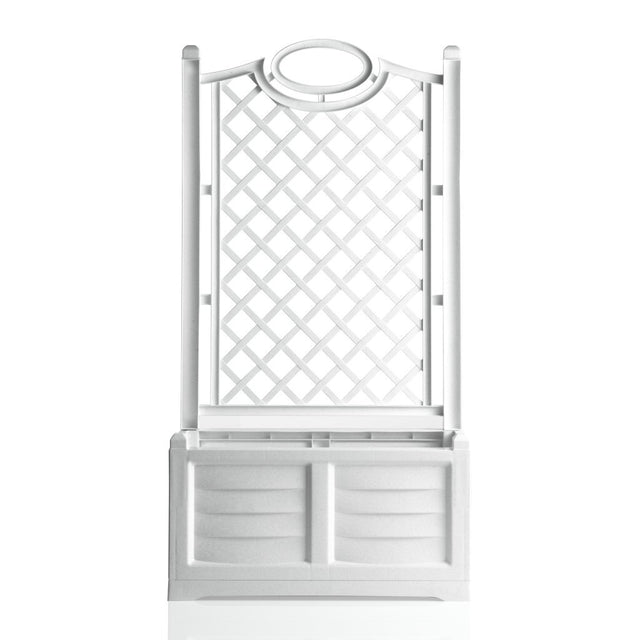 - Flower box with espalier, renewed and improved in functionality thanks to the possibility of placing the espalier in two positions, centered in relation to the base or in the usual position at the "back", thus increasing its versatility and possibilities of use.