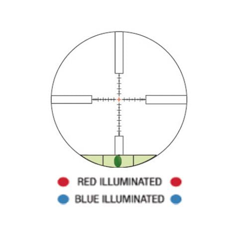 - Zámerný kríž Mil Dot nastaviteľný v červenej alebo modrej farbe