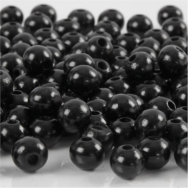 Creativ company wooden beads, d 8 mm, hole size 2 mm, approx. 80 pieces, black, 15 g 1 box