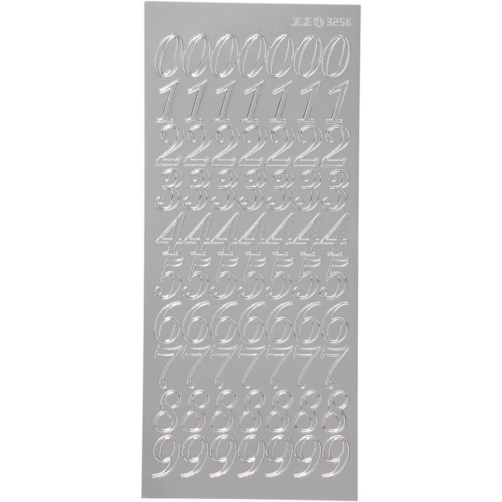 Creativ company stickers, numbers, sheet 10x23 cm, silver, 1 sheet