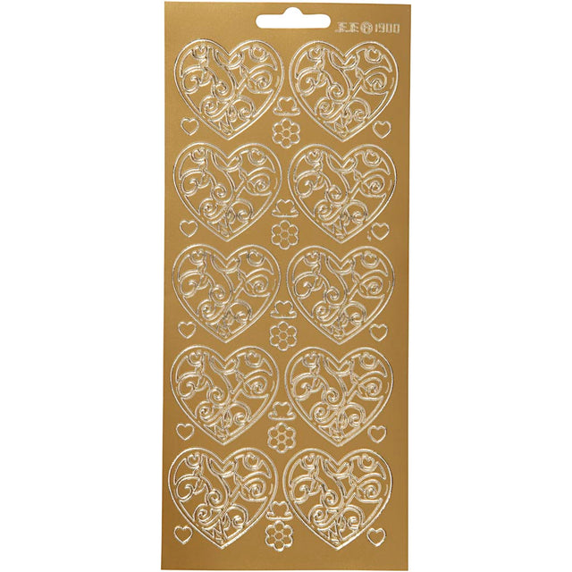 Creativ company stickers, hearts, sheet 10x23 cm, gold, 1 sheet