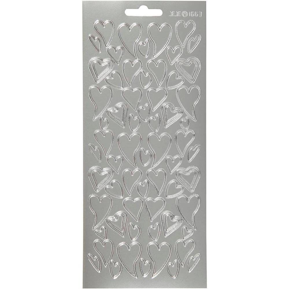 Creativ company stickers, hearts, sheet 10x23 cm, silver, 1 sheet