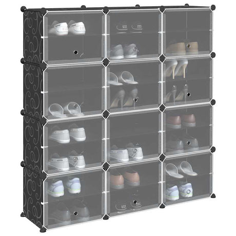 Pohištvo za shranjevanje Vidaxl z 12 predelki in črnimi vrati iz polipropilena