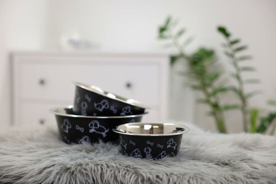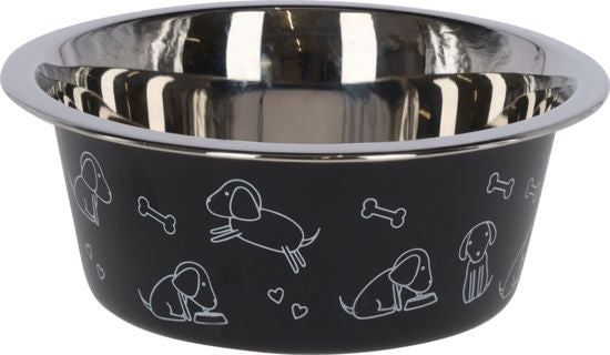 Voederbak rvs zwart met motief 900ml
