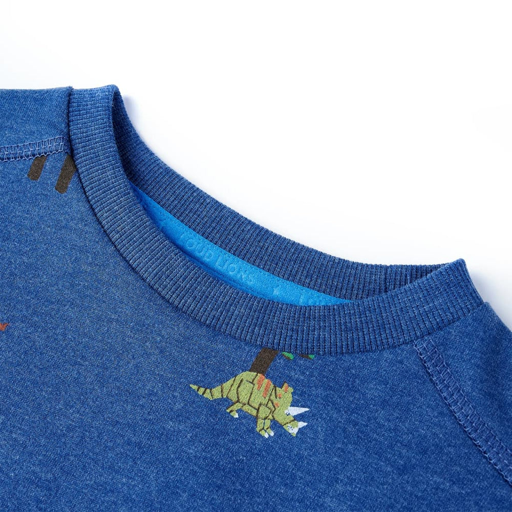 Ta pulover za otroke ima dolge rokave, okrogel vrat in rebraste robove na manšetah, izrez in dnu. Dinozavri in drevesa so prikazani na otroškem puloverju. Otroški pulover je narejen iz mehkega materiala z 80% česanim bombažem in 20% poliestra, zaradi česar je udoben in dihanje.