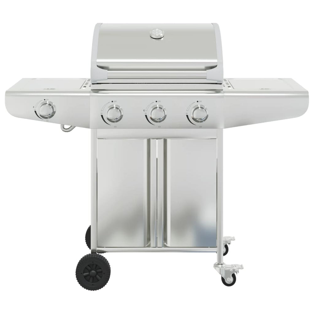 Vidaxl Plinski žar s 4 gorilniki iz nerjavečega jekla srebra obarva
