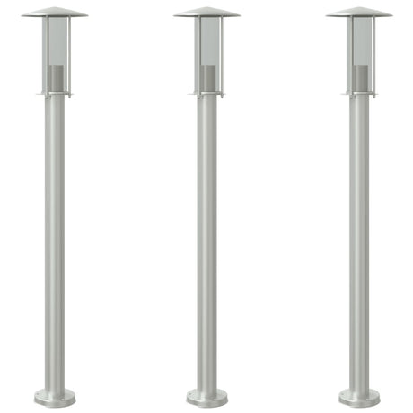 Vidaxl talna svetilka za zunaj 3 st 100 cm nerjaveče jekleno srebrno obarvano