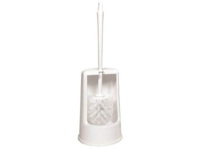 Denna toalettborste med hållare är gjord av polypropen och kommer i vitt. Ett användbart verktyg för att rengöra din toalett.