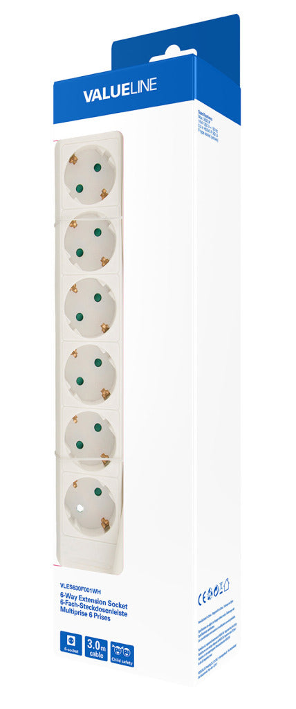 Valueline VLES630F001WH Schook doos 6-väg 3,00 m vit