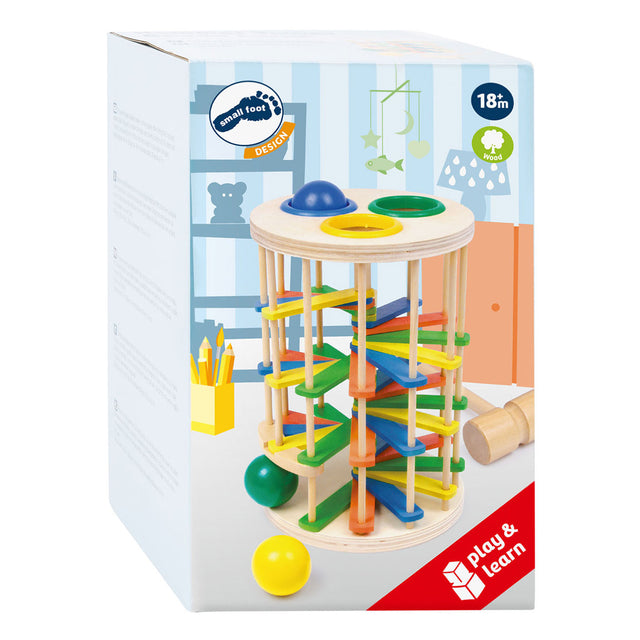 Detta vackert formade trätorn är ett gladt slagande spel! En ny variant av det klassiska Hamperbank -spelet.