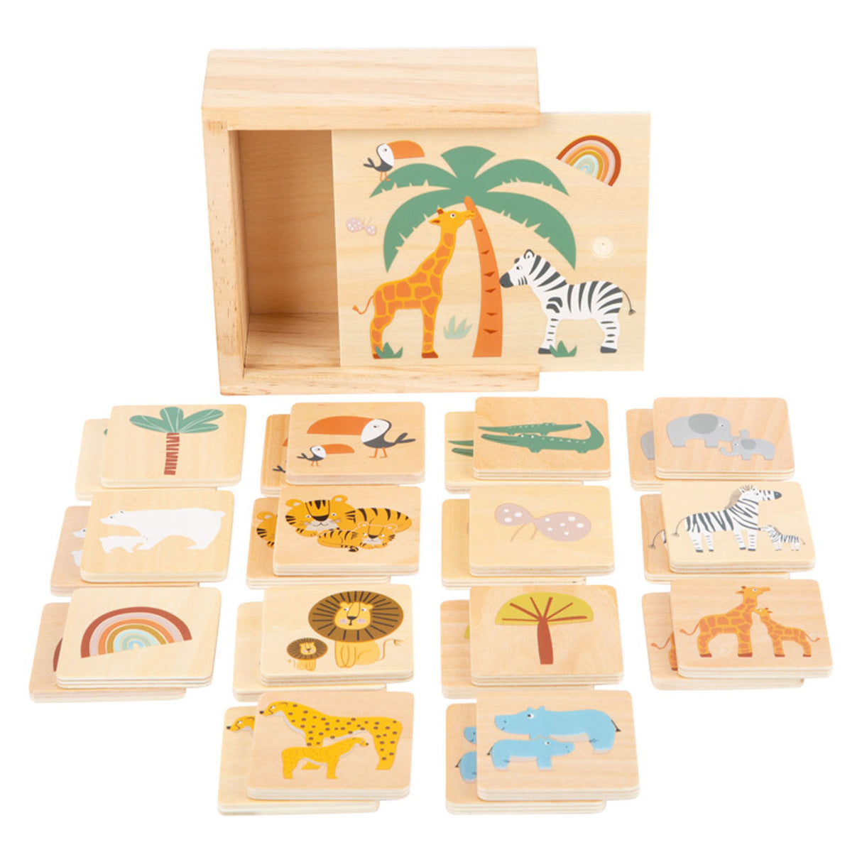 En äventyrlig safari väntar i barnkammaren! Med detta trämemo -spel kan barn träna sin koncentration och minne medan de letar efter de 14 matchande bildbesparingarna. Memo -stenarna är barnvänliga designade med söta safari -motiv i trendiga färger, så att barn kan dyka djupare in i världen av vilda djur. Inte bara lär de lekfullt känna invånarna i Savannah, utan de kan också njuta av timmar med kul.