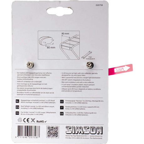 Bakljus batteris bagage rack ledat rött