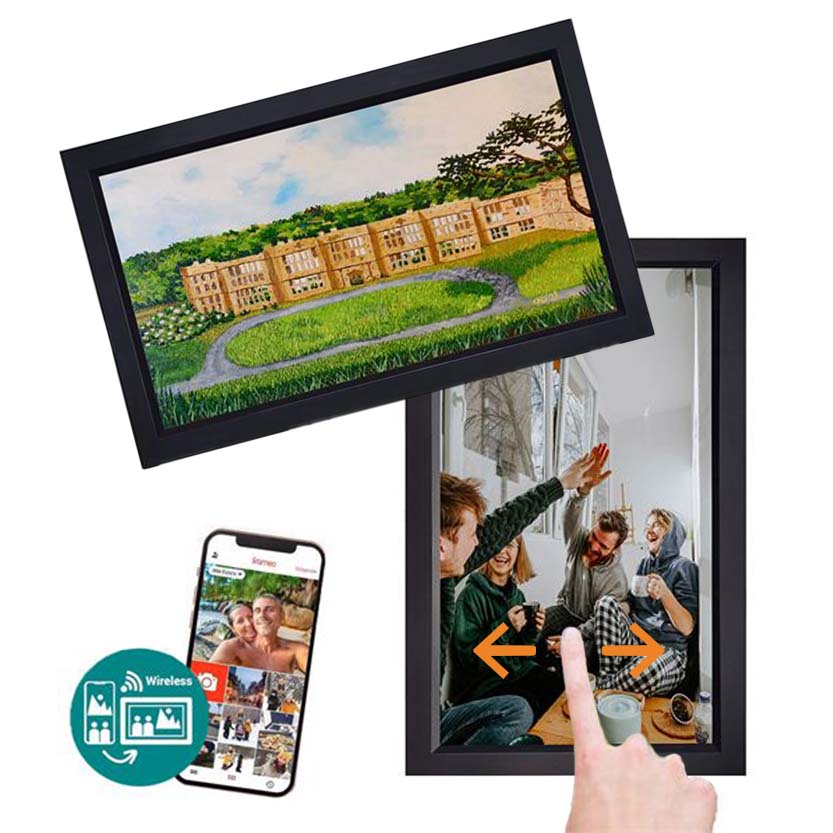 HF-156B är en digital fotoram med en stor skärm. Med den praktiska ram -appen på din smartphone kan du lägga foton eller videor på ramen trådlöst. Placera ramen i mitten av ditt vardagsrum och njut av dina favoritfoton. Dessutom kan andra som är anslutna till ramen också ladda upp foton att dela. Ramen har en enkel operation tack vare pekskärmen och Android -operativsystemet.