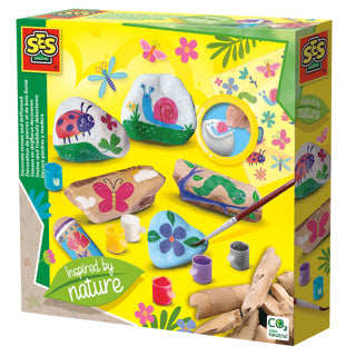 Med dessa stenar och drivved kan du göra vackra djur och figurer. Använd naturliga material för att skapa vackra konstverk! Stenarna och drivveden kan klättas med rub-on-klistermärkena och målas med plakatfärgen. Med SES kreativa produkter utvecklar barn kreativitet, färdigheter och kunskap på ett roligt och säkert sätt.