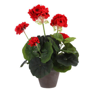 Edelman konstgjord växt pelargon röd i kruka grå | 2 st